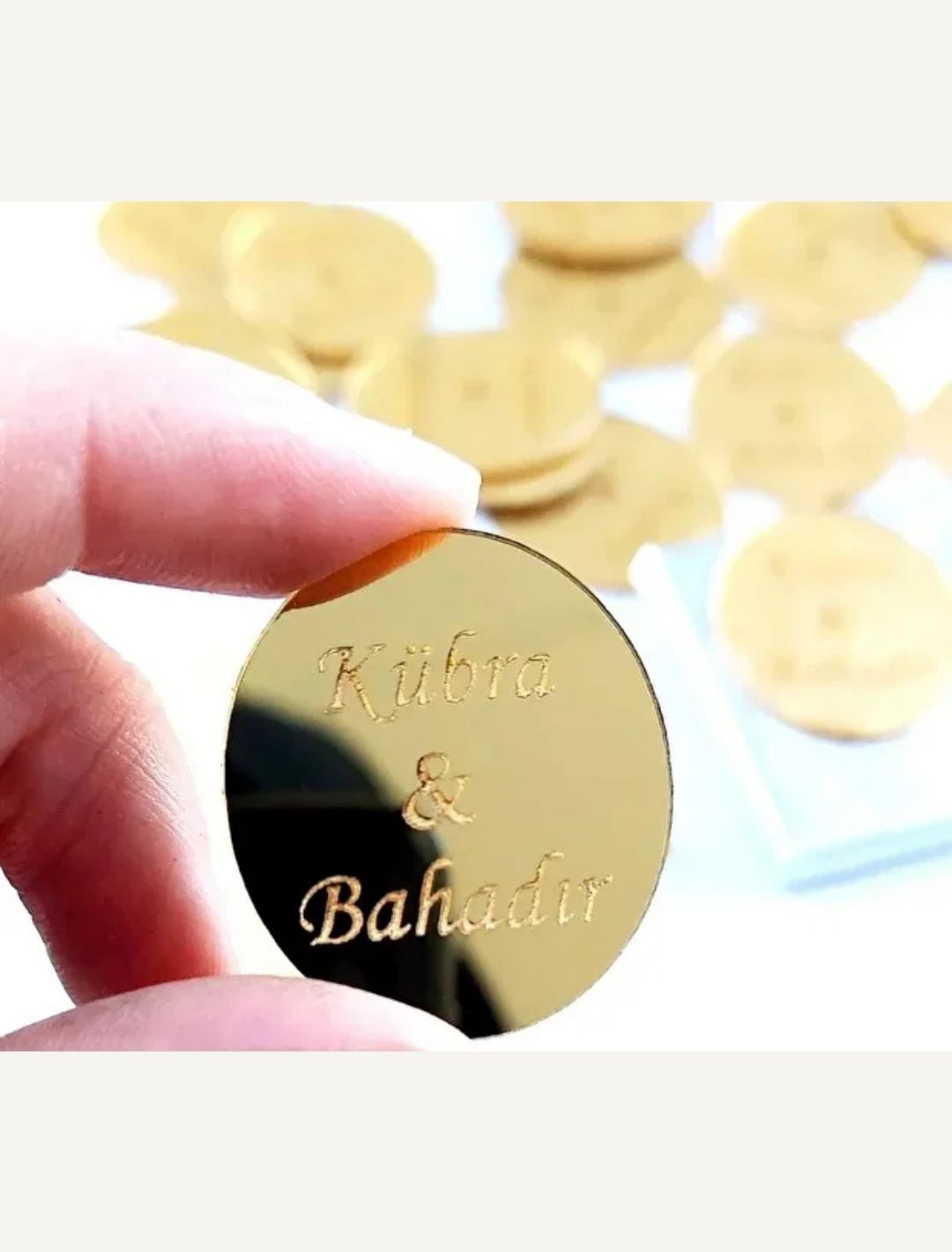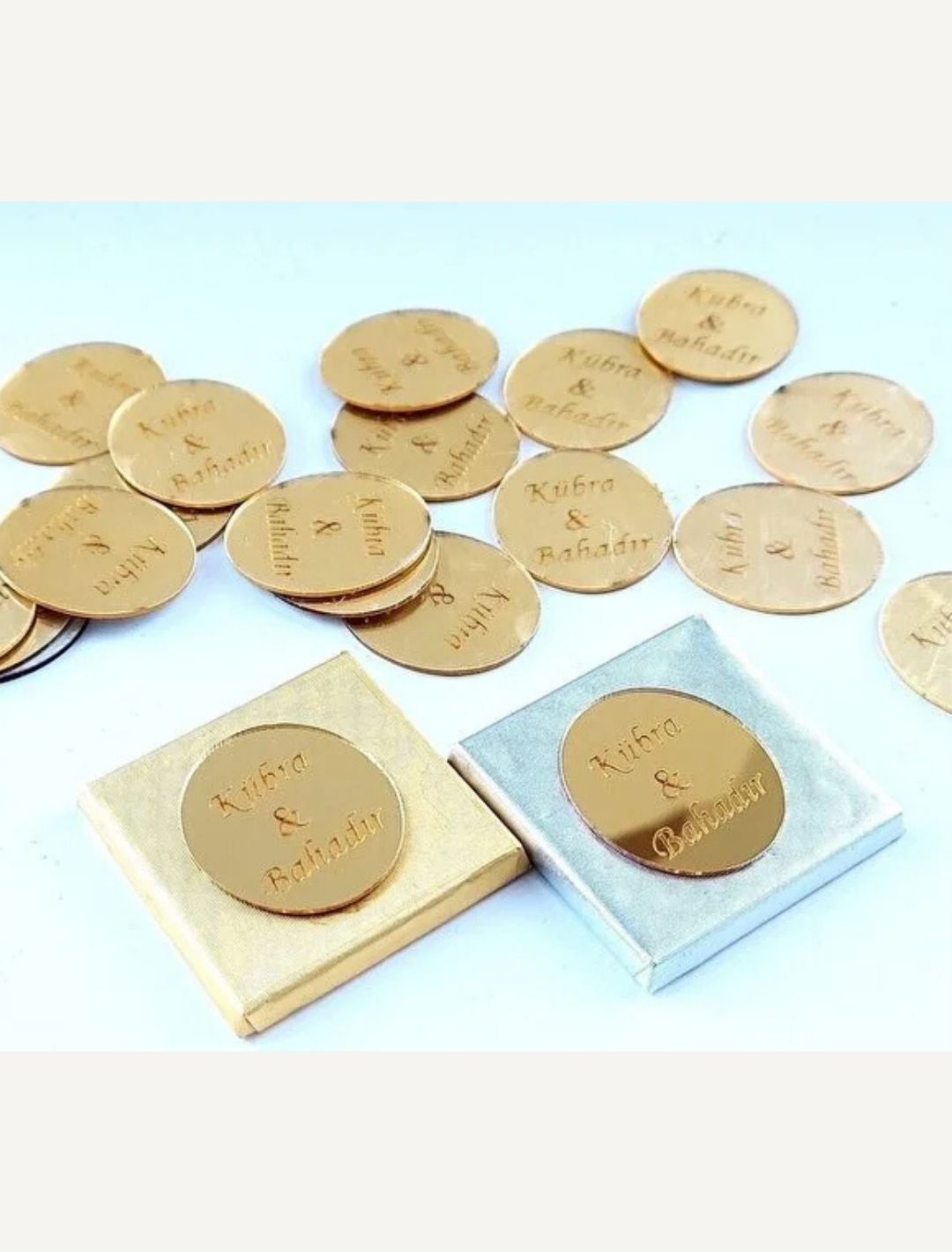Ürün yalnızca gold ve gümüş pleksi isim etiketleri için geçerlidir, çikolata dahil değildir.