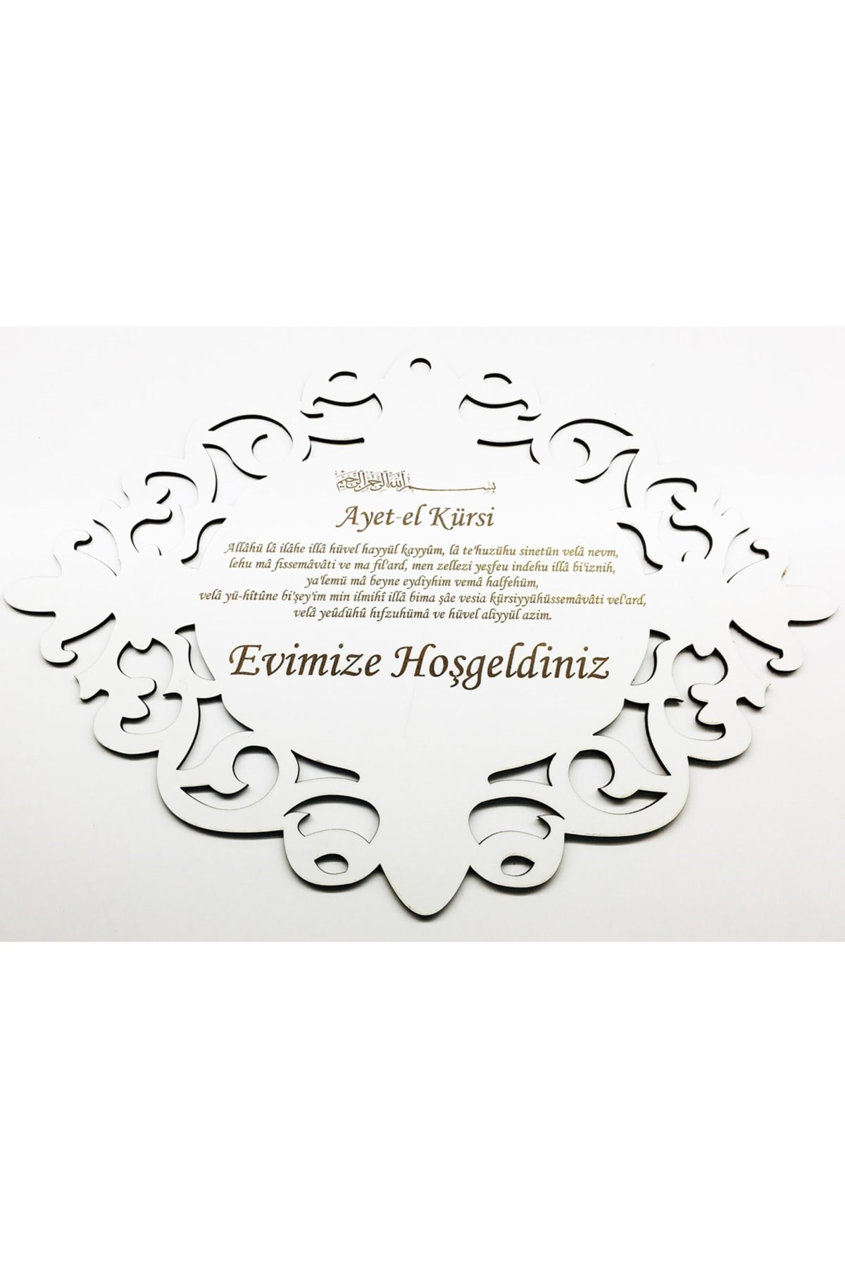 Ayetel Kürsi Dualı Beyaz Ahşap (mdf) Kapı Süsü Ayetli Kapı Süsü