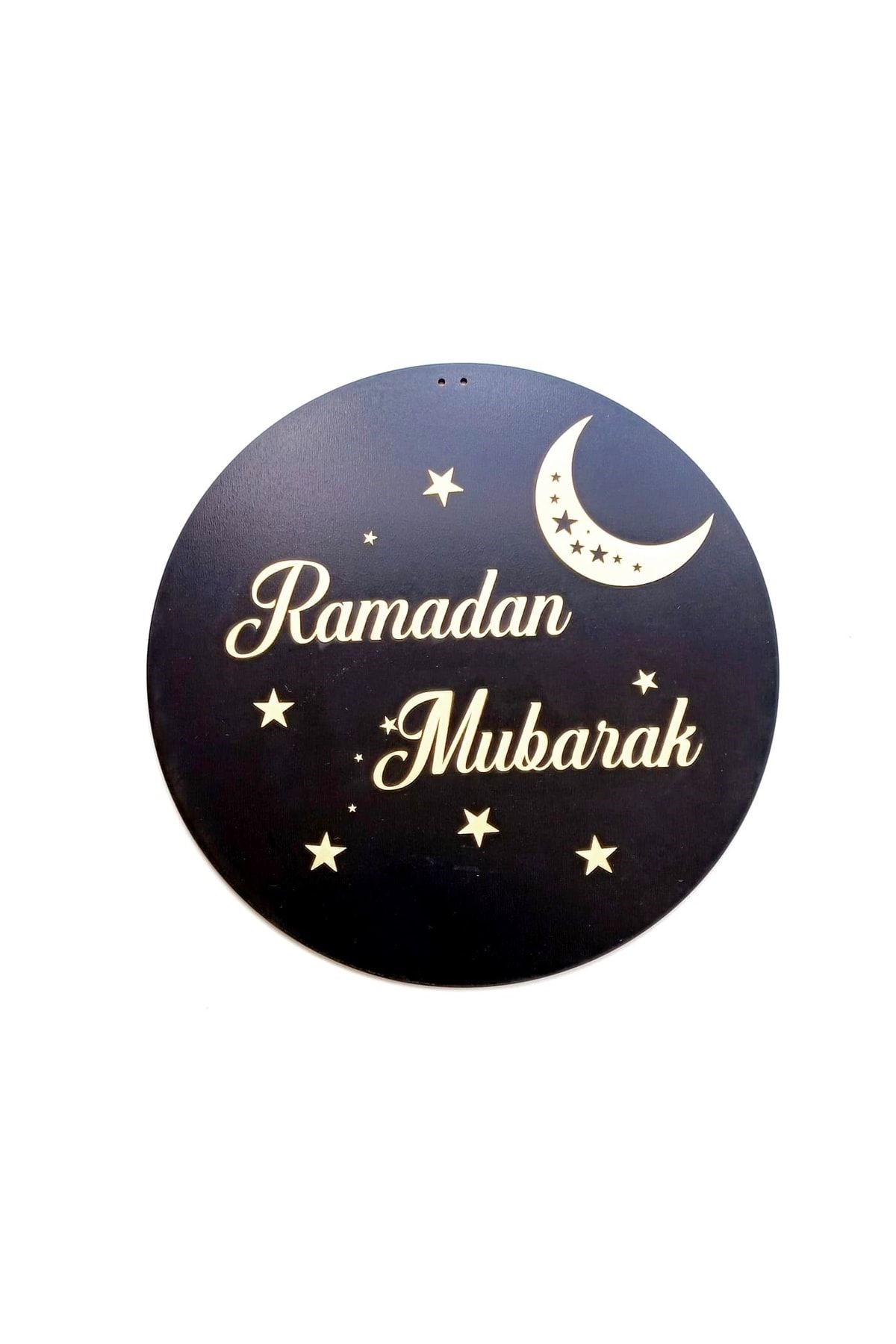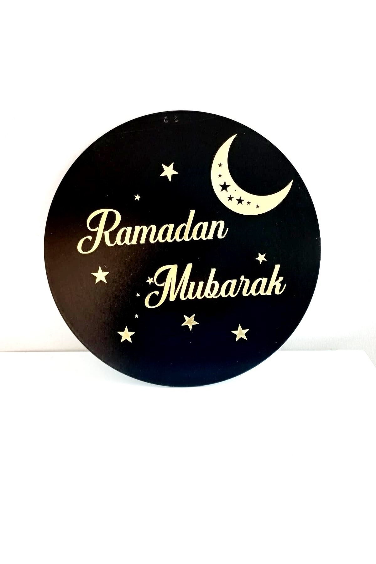 Ramazan Mubarak Yazılı Siyah Zemin Gold Yazı Kapı Süsü